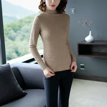 .Images of Solid elastic knit turtleneck slim basic sweater 2018 new long sleeve women autumn wool sweater