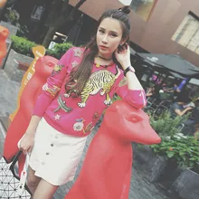 .Gallery for Spring New Heavy Industries Tiger Flower Cartoon Hand Embroidered Drill Knitted Sweater Women 2019 O-Neck Women Sweaters