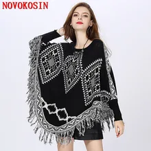 If You will buy for Sweaters, then Plus Size Women Capes Patchwork Loose Poncho 2018 Autumn Winter Knitted Bat Sleeves Sweater Triangle Tassel O Neck Pullover Coat is possible make you love