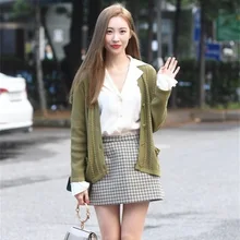 .Pictures of Same Knitted Sweater Cardigan Spring Autumn Dress New Army Green Short Jacket with Long Sleeve Sweater 2019 Clothes Women