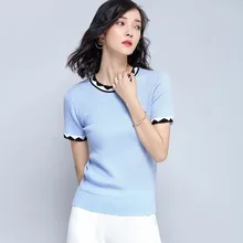 .Pictures for Women Knitted Short sleeve Sweaters and Pullovers Female Jumpers Women High Quality Sweaters Solid color for spring and summer