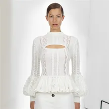 .Gallery of Same 2019 Early Spring New White Lantern Sleeves Sexy Hollowed Out Sweater Temperament Warm Pullovers O-Neck Sweater Women