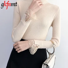 .Gallery for High Elastic Knitted Sweater Women 2018 Autumn Winter Lace Patchwork Long Sleeve Women Sweaters And Pullovers Female Pull Femme