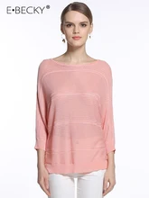 Quick Flash Price On Selected of E.BECKY Pink Three Quarter Sleeve Shirt Women Solid Hollow Pullover Summer Spring Mint Color Mesh Top Long Sleeve Women Clothes